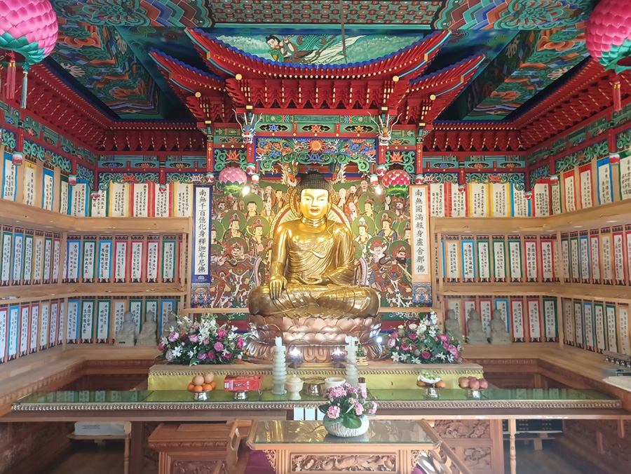 한국 불상 유물들의 대부분은 이 석가모니불로서 약왕보살(藥王菩薩)과 약상보살(藥上菩薩), 문수보살(文殊菩薩)과 보현보살(普賢菩薩), 관세음보살(觀世音菩薩)과 허공장보살(虛空藏菩薩) 등 3유형으로 나누어진다. 권속신(眷屬神)은 사천왕(四天王)이다. 유물 중에서 석굴암 본존상은 가장 널리 알려진 예이다. 한편, 석가여래를 봉안한 법당을 대웅전이라고 한다.